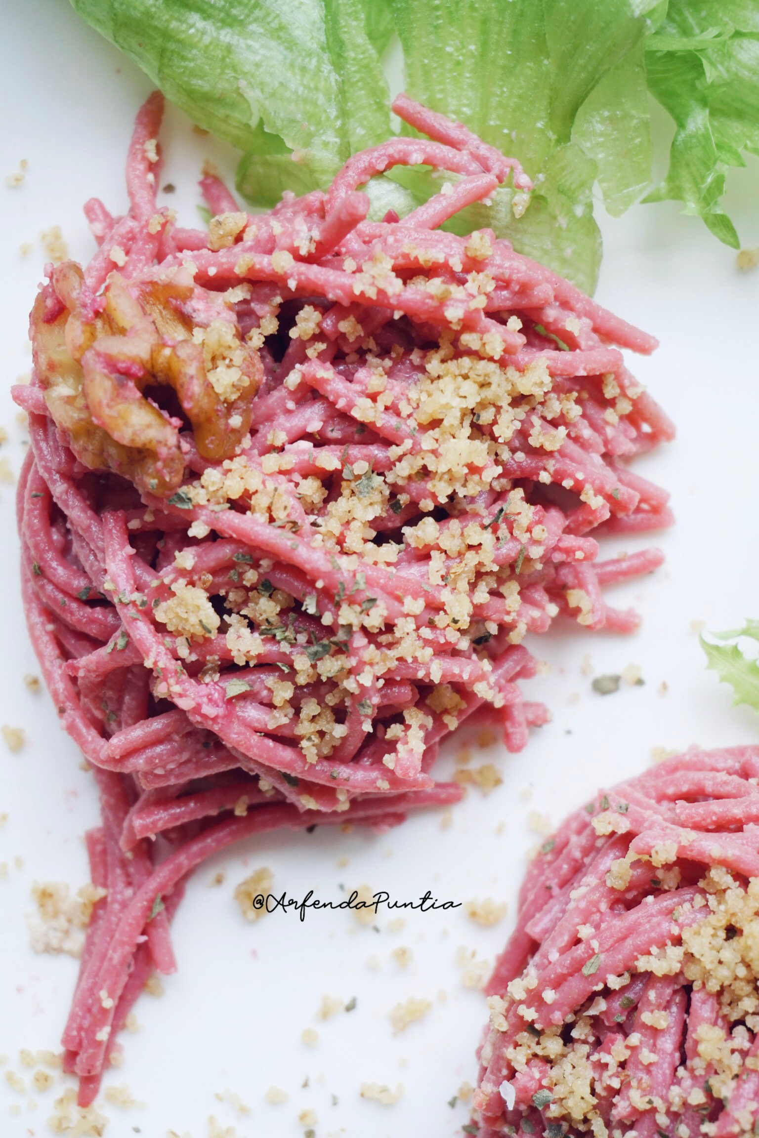 Sarapan hari ini mie ala Italia alias spageti , tapi spesial karena pakai beet/ buah bit jadi warna spagetinya cantik. Sayangnya bocah pada nggak tertarik, ntah warnanya aneh atau udah paranoid duluan sama rasanya. Si kakak Y sama sekali nggak mau huhuhu. Kakak Y emang suka nggak mau mencoba makanan baru. Ya wis lah.. Buah bit sendiri jarang dijumpai di Jepang. Saya sendiri nggak pernah lihat yang segar. Dan beberapa waktu lalu saat ke supa eh nemu bit yang bisa langsung dimakan (ready to eat, 100% beet) dalam kemasan vakum plastik. Karena bisa langsung dimakan dan nggak susah ngolahnya saya langsung beli. Oiya ada juga bentuk kaleng di kaldi (info dari teman). Bit ini bisa dipakai buat bikin cake, roti, nasi uduk dsb, jadi saya blender semua (tanpa air karena sudah berair) lalu simpan di freezer, biar gampang kalau mau dipakai, karena pakai bit ini bikin warna makanan jadi bagus banget, pewarna alami . Oiya buah bit ini punya rasa agak manis tapi bau dan rasanya agak langu, kurang suka sebenernya saya tapi karena pakainya sedikit jadi nggak terlalu terasa. Creamy Walnut & Beet SpaghettiBahan : Whole wheat spaghetti 100 gram, rebus Minyak zaitun 1 sdm Buah bit yang diblender (pakai beet ready to eat) 2-3 sdm (disesuaikan saja sesuai selera warna dan rasa) Vegan permesan cheese + air (agar spagetti creamy) 2 sdm Walnut Bawang putih dan bombay bubuk secukupnya Garam secukupnya (tadi nggak pakai) Cara membuat : campur semua bahan, masak sebentar dengan api sedang. Taburan : basil, vegan parmesan cheese. Oiya saya sertakan juga resep vegan parmesan cheese, keju ala ala vegan ini enak dicampur di spageti, pizza, dry chicken curry, salad bahkan tumis sayuran. Lumayan jadi ada protein nabati (kacang) juga. Vegan parmesan cheeseBahan : Walnut (bisa ganti kacang mete) 100 gram Garam 1/2 sdt Bawang bombay bubuk 1/3 sdt (optional) Bawang putih bubuk 1/3 sdt Nutritional yeast 3 sdm Cara membuat : Haluskan semua bahan dengan food processor, masukkan ke dalam toples lalu simpan di kulkas. Rencananya sih sarapan ala ala vegan, tapi ternyata saya nggak bisa, akhirnya tetep tambah telur orak arik dan ayam cincang (makanan bocah yang nggak dimakan haha)
